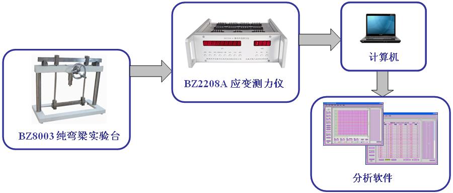 BZ8003纯弯梁实验台--BZ2208A静态应变测力仪--计算机--分析软件
