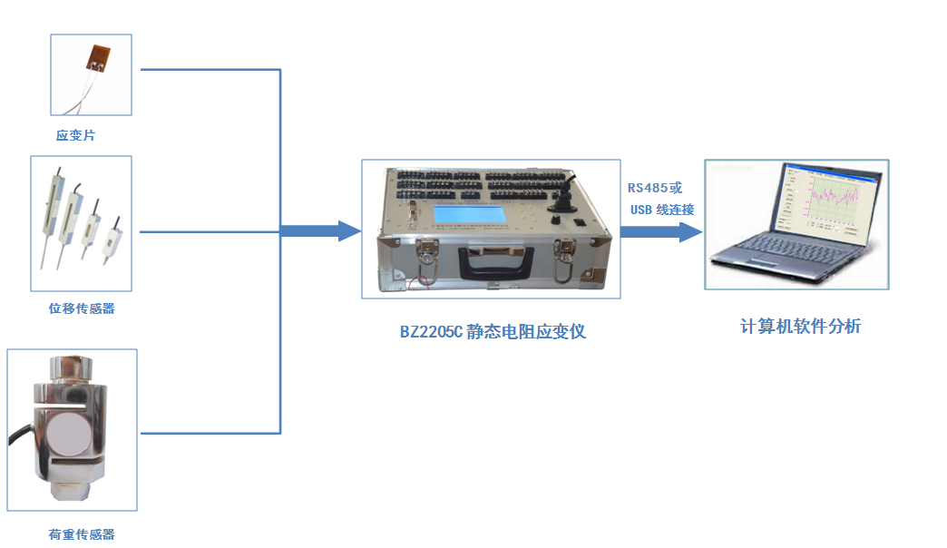 BZ2205C程控靜態電阻應變儀是在靜力強度研究中測量結構及材料任意點變形的應變測試儀器。