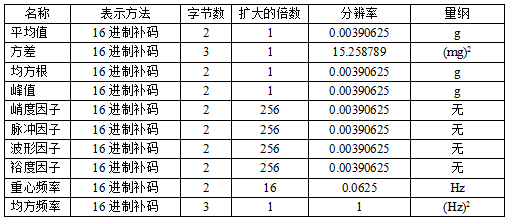 1.測量方向:空間三軸向(X、Y、Z)。 2.測量范圍:瞬時值:±16g。 通過“單次測量”指令測量加速度的瞬時值。數(shù)據(jù)的十進制與十六進制轉換如下表所示: 3.分辨率:瞬時值:13位(3.9 mg/LSB)。 4.分析數(shù)據(jù):分析數(shù)據(jù)按512點數(shù)據(jù)計算,去掉直流分量,輸出平均值(包含直流分量)、方差、均方根、峰值、峭度因子、脈沖因子、波形因子、裕度因子、重心頻率、均方頻率。 分析數(shù)據(jù)的表示方法、數(shù)據(jù)分辨率和物理量綱見下表: 為了提高數(shù)據(jù)的分析精度,部分分析數(shù)據(jù)中擴大了數(shù)據(jù)的倍數(shù)。 5.可選帶寬:通過軟件選擇不同的采樣速率和信號帶寬。 6.非線性度:±0.5%。 7.跨軸靈敏度:1%。 8.0g偏移:X、Y軸:±150mg;Z軸:±250mg。 9.噪聲(采樣速率100Hz):X、Y軸:2.9mg有效值;Z軸:4.2mg有效值。 10.數(shù)字濾波器:具有低通數(shù)字濾波功能,數(shù)字濾波器上限頻率由采樣速率的選擇自動完成。 11.抗沖擊能力:10000g。 12.溫度范圍:-40℃至+85℃。 13.輸出接口(可選):RS232TTL電平、RS485,433MHz無線數(shù)字接口。 14.波特率(可選):115200bit/s。 15.通訊總線模式:主從模式。傳感器為從機。 16.從機通訊地址:00H~feH。00H為廣播地址。 17.無線通訊距離:<500m。 18.電源電壓范圍:4.5VDC至5.5VDC。 19.密封等級:IP56。 20.重量:<0.2kg。 21.外形尺寸:見圖。 22.安裝方式:螺釘安裝。 傳感器的接線 對于無線傳輸?shù)膫鞲衅鳎B接2芯屏蔽電纜,每芯截面積大于0.2mm2,用于電源供電,屏蔽層接電 源地。 對于RS485口傳輸?shù)膫鞲衅鳎B接4芯屏蔽電纜,每芯截面積大于0.2mm2。2芯用于電源供電,2芯 用于RS485通訊,屏蔽層接電源地。 單次測量數(shù)據(jù) 單次測量數(shù)據(jù)是傳感器每接收一次指令,發(fā)送一組當前測量數(shù)據(jù)。數(shù)據(jù)是X軸、Y軸、Z軸加速度瞬 時值。 讀一組分析數(shù)據(jù) 首次發(fā)送“讀一組分析數(shù)據(jù)”指令,開始啟動數(shù)據(jù)的采樣和分析,經(jīng)過一段時間間隔返回一組分析數(shù)據(jù)。由此開始,傳感器在后臺連續(xù)采集并分析數(shù)據(jù),將分析結果保存到數(shù)據(jù)發(fā)送區(qū),當新的分析結果完成后,將覆蓋前一次的分析結果,直到傳感器接收到“停止測量”指令才會停止并進入等待狀態(tài)。需要繼續(xù)讀分析數(shù)據(jù)時,再次發(fā)送“讀一組分析數(shù)據(jù)”指令,傳感器立即將當前的分析結果輸出。如果兩次發(fā)送“讀一組分析數(shù)據(jù)”指令的時間間隔小于規(guī)定的時間間隔,讀取的分析結果是重復的,如果兩次發(fā)送“讀一組分析數(shù)據(jù)”指令的時間間隔大于規(guī)定的時間間隔兩倍,將會丟失一次分析數(shù)據(jù),讀取的是當前的分析結果。 傳感器實現(xiàn)采樣、分析、數(shù)據(jù)輸出同步進行,互不影響,保證采樣數(shù)據(jù)的連續(xù)性。 分析數(shù)據(jù)按512點數(shù)據(jù)計算,去掉直流分量,輸出平均值(包含直流分量)、方差、均方根、峰值、峭度因子、脈沖因子、波形因子、裕度因子、重心頻率、均方頻率。微小振動和噪聲的處理。在無振動信號時,為了消除微小振動和噪聲的影響,設置了較小振動閾值。當峰值小于0.2g時,平均值(包含直流分量)正常輸出,其它分析結果均為零。 平均值的處理。傳感器輸出的平均值由3個因素疊加組成:1、傳感器在三軸上測得的重力加速度分量≥±1g,與一般振動信號相比其值較大;2、采樣信號攜帶的直流分量,在振動測量中其值很小,分析點數(shù)越多其值越小,甚至可以忽略;3、傳感器在生產(chǎn)時存在的靜態(tài)偏移,其值很小且不隨時間變化。傳感器安裝完成后,1和3值的疊加是固定常數(shù),可以在沒有振動的情況下采集平均值,備份在計算機中,用以抵消正常測量時的平均值。 連續(xù)讀分析數(shù)據(jù)。 啟動分析數(shù)據(jù)時,發(fā)送“連續(xù)讀分析數(shù)據(jù)”指令,經(jīng)過一段時間間隔返回一組分析數(shù)據(jù),以后不需要發(fā)送指令,分析數(shù)據(jù)源源不斷的輸出。 一組分析數(shù)據(jù)完成后,輸出分析結果,繼續(xù)進行下一組數(shù)據(jù)分析,再輸出分析結果,直至無窮。兩組采樣數(shù)據(jù)之間無斷點。兩組分析數(shù)據(jù)輸出的時間間隔與設置的采樣速率有關,見下表: 停止測量數(shù)據(jù) 發(fā)送“停止測量”指令后,傳感器停止輸出數(shù)據(jù),進入等待狀態(tài)。 5、應用實例。 1.某臺設備的轉動疲勞試驗。 某臺設備是一個以轉動圓盤為核心的機械旋轉系統(tǒng),需要對其進行5年以上的不間斷轉動疲勞試驗。 選用2只BZ1803-01數(shù)字傳感器,對稱安裝在圓盤的兩面,測量圓盤轉動系統(tǒng)在XYZ三個方向的加速度方差、均方根、峰值、峭度因子、脈沖因子、波形因子、裕度因子、重心頻率、均方頻率。 傳感器選擇433MHz無線通訊,通訊速率115200bit/s。電源用5VDC供電,電源的正負極用滑環(huán)與兩只傳感器連接。計算機通過USB口連接一個無線通訊模塊,作為主機與傳感器進行通訊。兩只傳感器設置不同的地址,作為從機使用。 計算機通過廣播功能同時啟動兩只傳感器連續(xù)測量數(shù)據(jù),兩只傳感器不間斷的進行采樣和分析數(shù)據(jù)。計算機根據(jù)數(shù)據(jù)分析的時間間隔,先后讀取兩只傳感器的數(shù)據(jù)。計算機讀取數(shù)據(