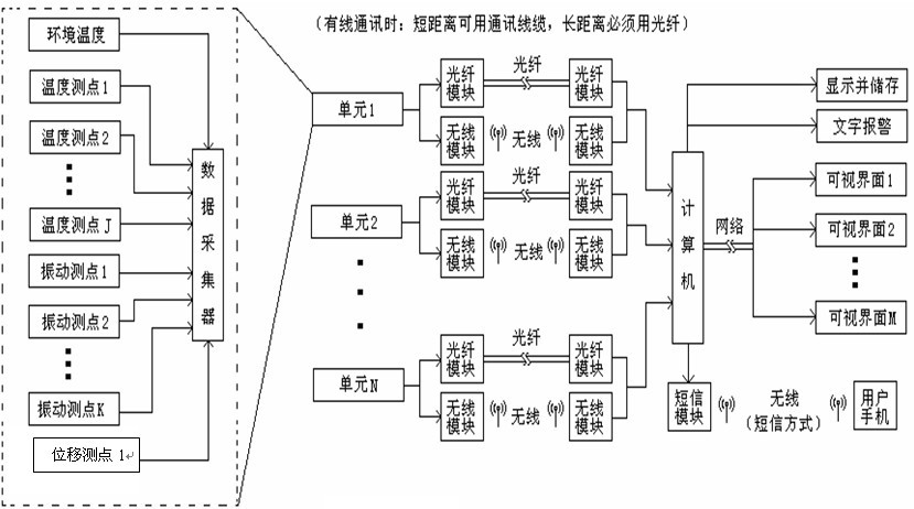 1、具有數字輸出功能的智能化、復合型振動溫度傳感器。 智能化復合型振動溫度傳感器可以同時測量振動速度有效值和攝氏溫度值。該傳感器將溫度傳感器嵌入到振動加速度傳感器中,還嵌入了信號調理芯片、微計算機芯片和總線輸出芯片,實現電荷變換、放大、濾波、一次積分、有效值轉換、模擬數字轉換、數字量輸出等功能。 這種傳感器的主要優點有:抗干擾能力強,精度高,性能穩定,可靠性強,能耗低,可進行長距離無差錯傳輸,可進行多只同步數據采集和接受總線上的廣播信息,同時該產品還具有自主知識產權,并可防止病毒感染和信息泄露。 2、具有模擬量輸入數字量輸出功能的總線單元模塊。 總線單元模塊是將多種類型的模擬量輸入信號轉換為可直接與總線連接的數字信號。模塊主要用途是與傳感器或模擬信號調理器連接,使傳感器或模擬信號調理器具有數字化功能。例如,模擬量輸出的位移傳感器與總線單元模塊連接后,就成為數字量輸出的位移傳感器,直接掛總線使用。以此類推,總線單元模塊可以將上萬個品種的傳感器連接到數據總線上。 3、具有多總線的數據采集器。 多總線數據采集器是連接數字化傳感器和上層總線或上位機的儀器,負責傳感器和計算機之間的信息整合與傳輸。數據采集器有3條輸入總線和1條輸出總線。 數據采集器輸入總線可以根據下掛傳感器或儀表使用不同的通訊協議。在數據通訊中,優化底層通訊協議,在相同波特率的情況下提高數據傳輸效率。在提高通訊效率的基礎上降低了誤碼率。 數據采集器輸出總線可以直接連接計算機,也可以連接無線數傳設備遠距離通訊,還可以接受上一級數據采集器的管理,使多個數據采集器連接在一起,在中間層組成新的數據總線。 4、開發多總線數據通訊軟件。 通訊部分軟件的主要功能是按規定時間間隔對采集儀發起詢問(發起通訊),采集儀接到請求后采集現場數據并回傳給通訊部分軟件,通訊部分軟件收到數據后實時傳給上位機軟件。 5、開發上位機應用軟件。 本軟件通過接收通訊部分傳上來的數據,可以實時顯示數據,存儲數據(存入SQL server 2000 數據庫),查看歷史數據,畫歷史曲線圖,查詢報警數據,上一班次報警總結,對軟件進行各項參數設置等。當有報警發生時,本軟件可以聲音與畫面同時報警,數據超過報警值則對應畫面黃色閃爍,傳感器故障則對應畫面黃色閃爍。 ![]()