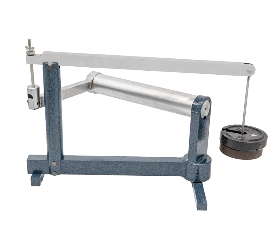 该试验台在材力实验教学中配上电阻应变仪, 可做弯扭组合变形实验用。采用1:10 杠杆比放大,每个砝码10N,在距试样左端150mm的截面上可获得15 Nm的弯矩增量和25Nm扭矩增量,最大扭矩增量为100 Nm。 试样为钢圆管,外径D=48mm,内径d=44mm(实验时要实际测量),全长317mm。机体重量为5公斤。